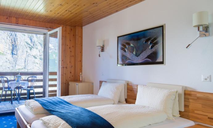 Most rooms with spectacular views to the Eiger, Mönch, Jungfrau and the Lauterbrunnen valley. All rooms are non-smoking with bath or shower/WC, balcony, cable TV/radio, minibar and hairdryer. 26 Rooms: 2 single rooms, 1 french bed, 23 double rooms (6 x 3 bedded rooms and 2 x 4 bedded rooms) as well as 4 family apartments ( 2 double rooms with connecting doors and 1 bathroom. Free Wifi in all of the rooms.